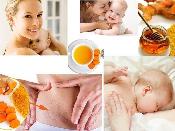 Tinh bột nghệ còn là thần dược cứu tinh cho các chị em sau sinh tuy nhiên công không bằng được với dầu dừa hay rượu gừng nghệ.