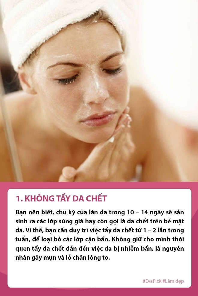 Rất nhiều chị em có những thói quen như không tẩy da chết, không tẩy trang khi đi ngủ, sờ tay lên mặt thường xuyên…. đây là những thói quen gây ảnh hưởng xấu đến làn da. Chúng khiến làn da ngày càng đen sạm, lỗ chân lông to, làm nhan sắc phái đẹp bị tụt dốc.