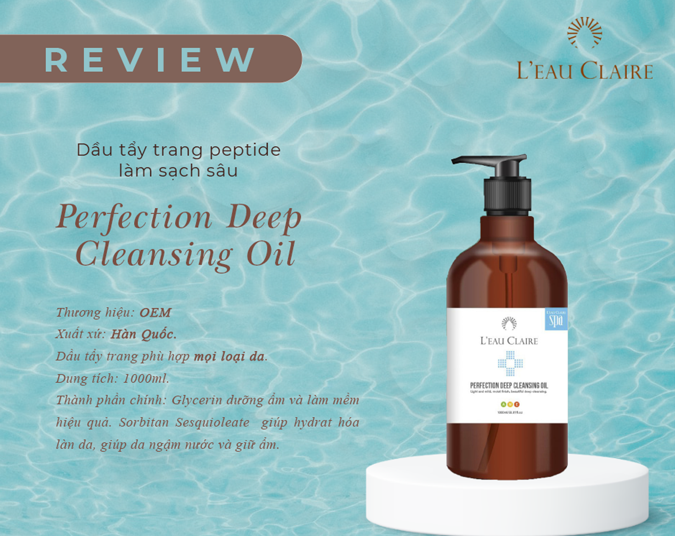Nếu người dùng chưa có những hiểu biết nhất định về sản phẩm thì việc chọn mua loại dầu tẩy trang tốt nhất để bảo vệ da và làm sạch hiệu quả là điều không hề đơn giản. Dưới đây là những thông tin cần thiết mà người dùng cần quan tâm khi mua loại dầu tẩy trang peptide làm sạch sâu của nhà L’eau Claire.