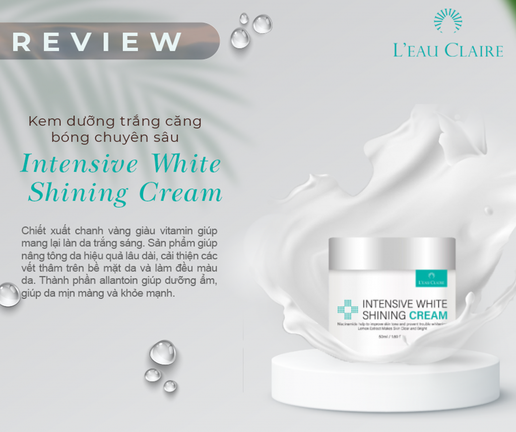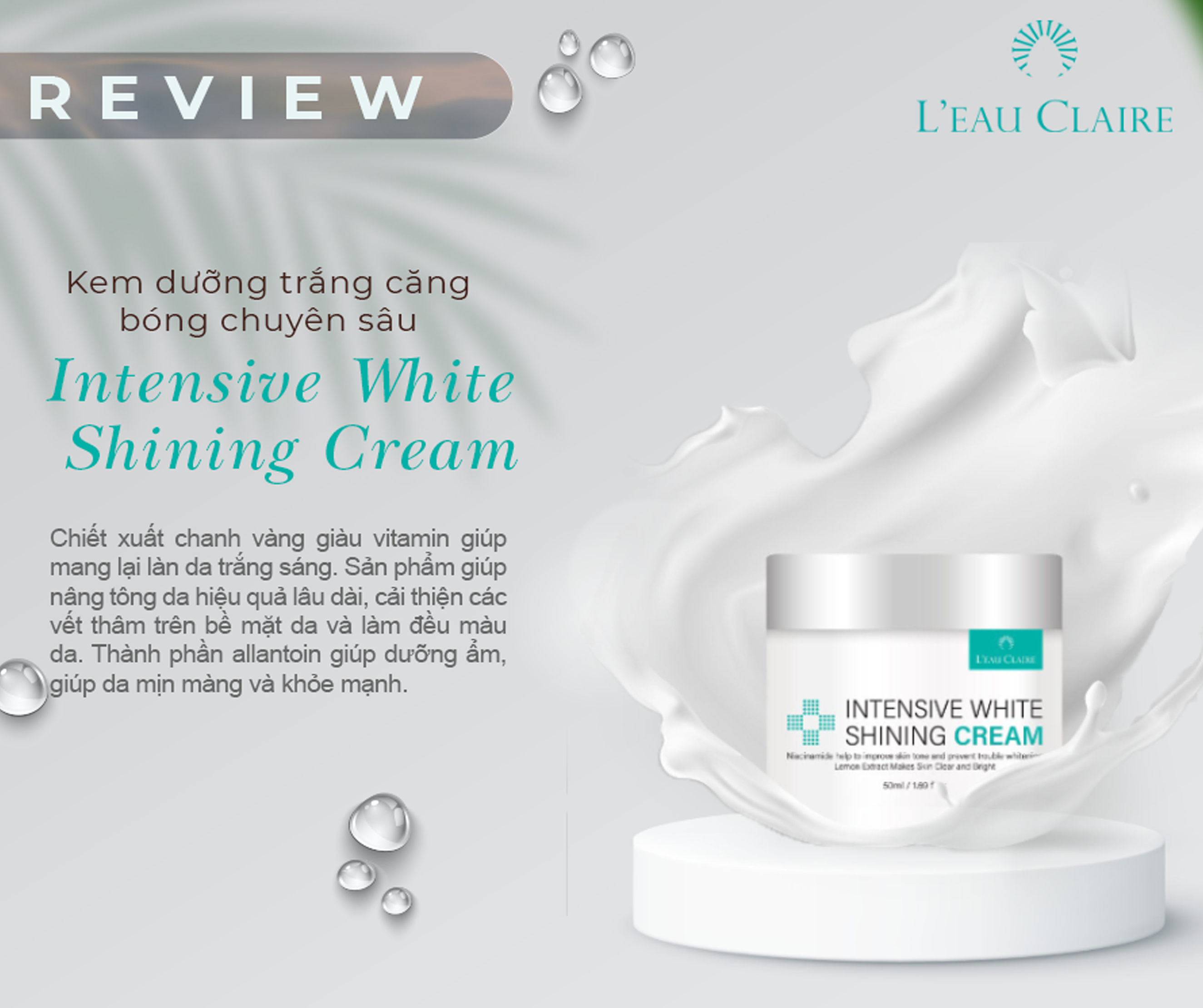 Trong các dòng kem dưỡng của L’eau Claire không thể không kể đến dòng kem Kem dưỡng trắng căng bóng chuyên sâu – Intensive White Shining Cream, sản phẩm đem lại tác dụng chăm sóc và cải thiện làn da vượt trội.